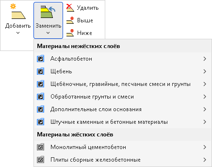 Хотите заменить слой щебня на аналог? Не нужно удалять слой. Достаточно выбрать новый материал из библиотеки через контекстное меню или ленту. Это поможет ускорить подготовку альтернативных решений для технико-экономического обоснования.