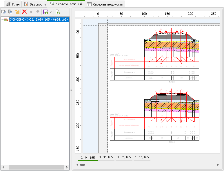 - Возможность настраивать расположение объектов на чертежах поперечных профилей и сохранять их в шаблоне.