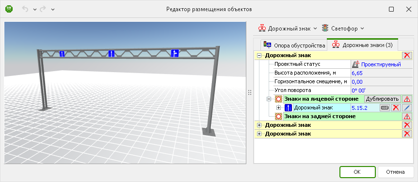 • Возможность размещать на одной опоре дорожные знаки и светофоры с помощью нового объекта — Опоры обустройства.