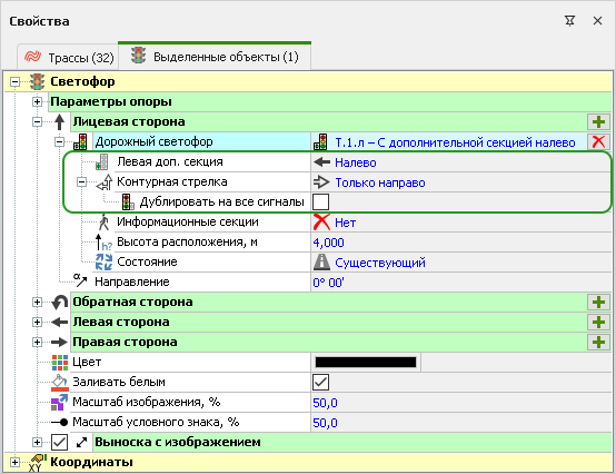1. Для светофоров Т.1 и Т.3 с дополнительными секциями расширен список вариантов стрелок на основной и дополнительных секциях.